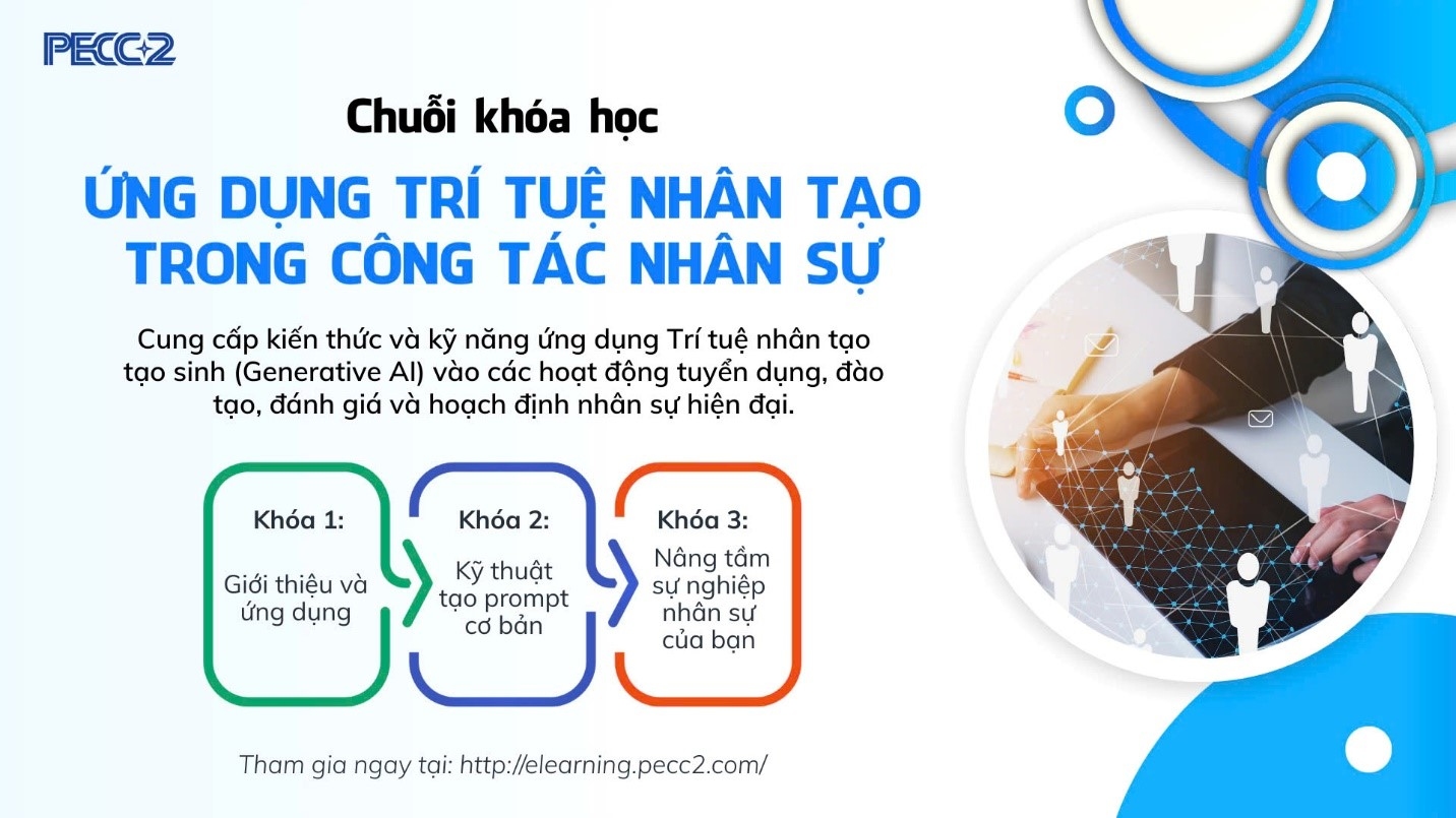 Truy cập hệ thống PECC2 Elearning và tìm kiếm từ khóa “Ứng dụng trí tuệ nhân tạo trong nhân sự” để tham tham gia khóa học ngay.